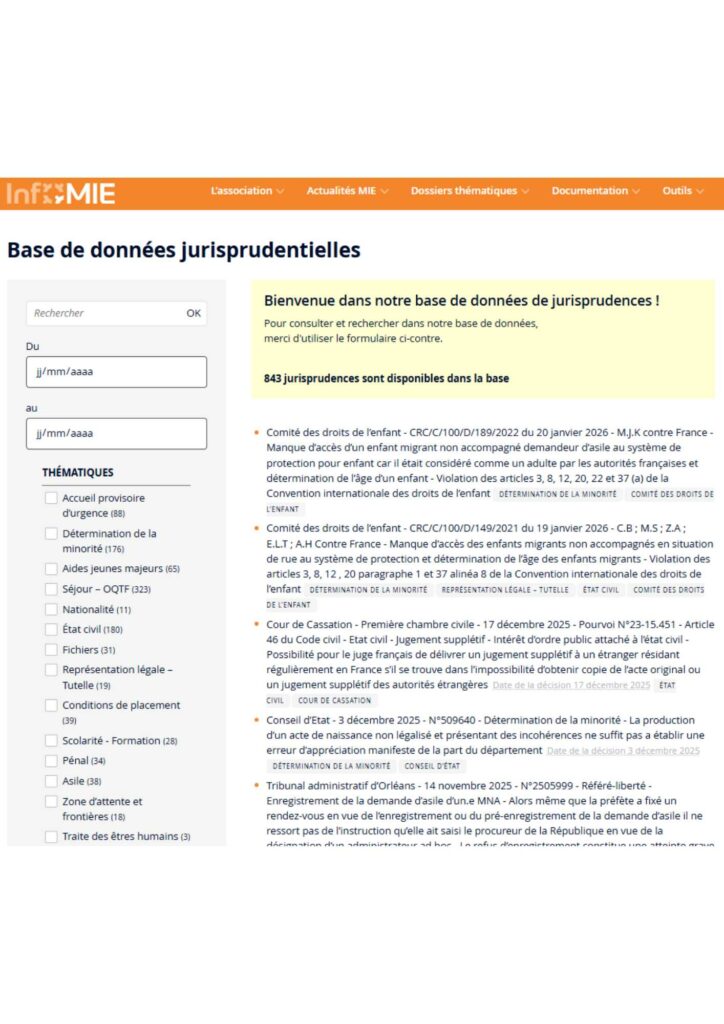 InfoMIE met à disposition une base de données de jurisprudences permettant de suivre l’évolution des décisions de justice relatives à...