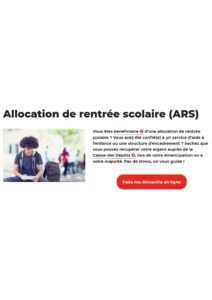Cette page du site internet de la Banque des Territoires, dont dépend la Caisse des Dépôts et des Consignations, présente l’allocation de rentrée scolaire et les démarches à effectuer pour la récupérer.